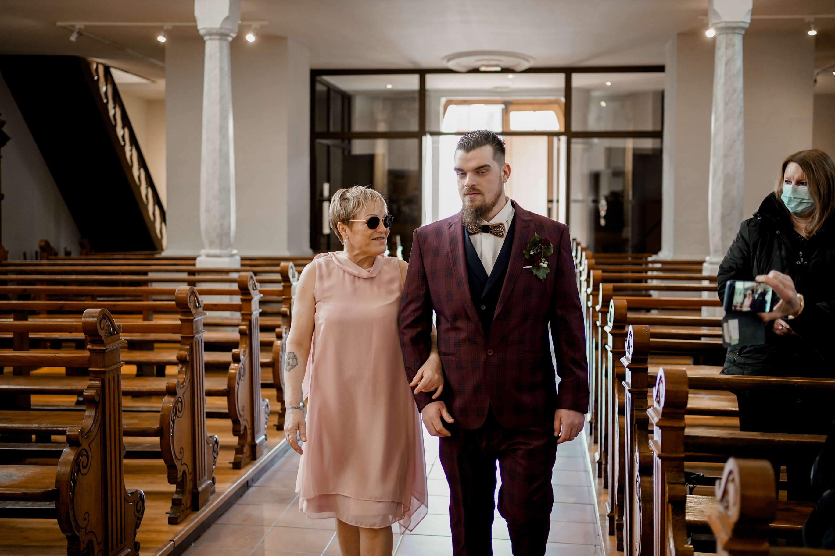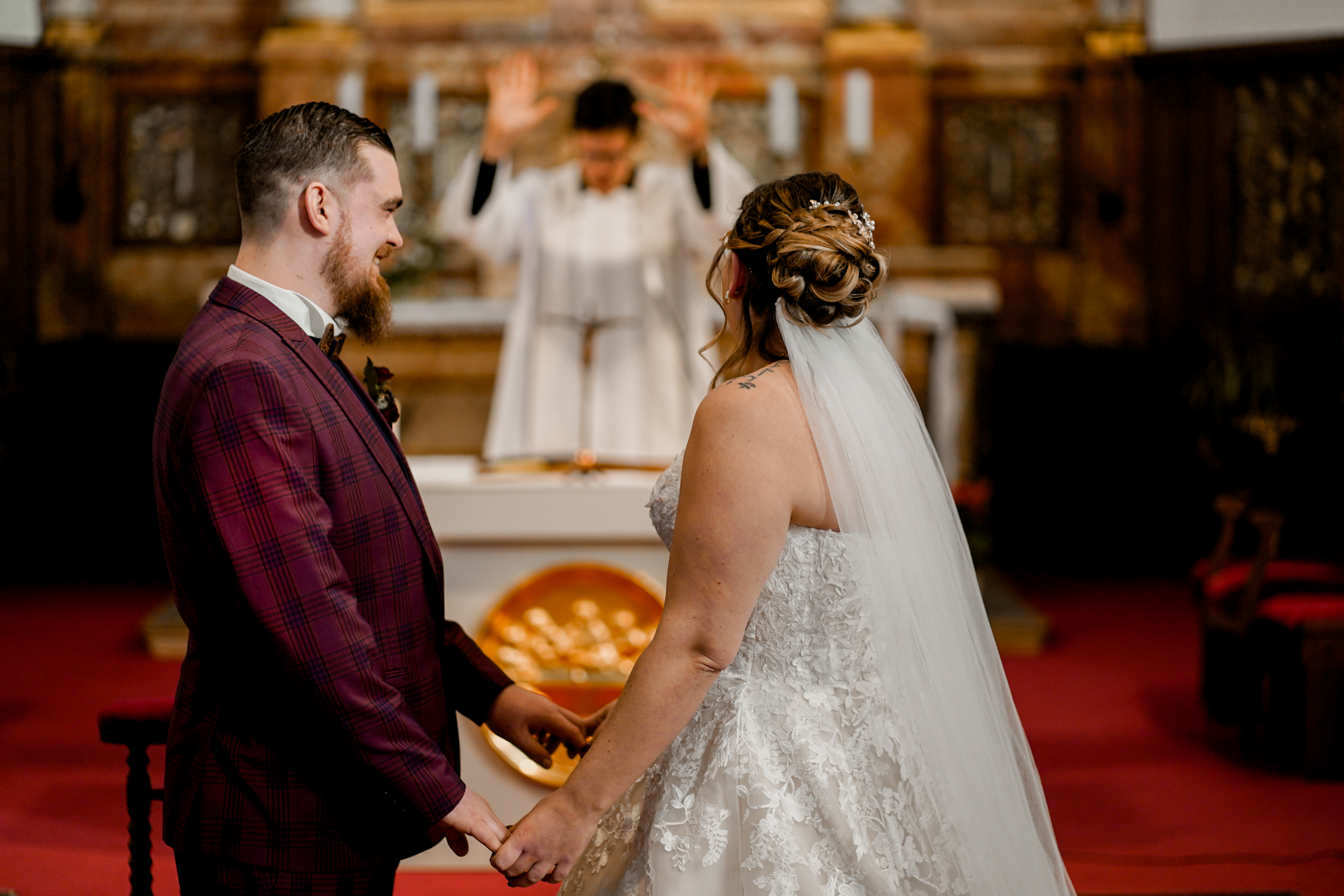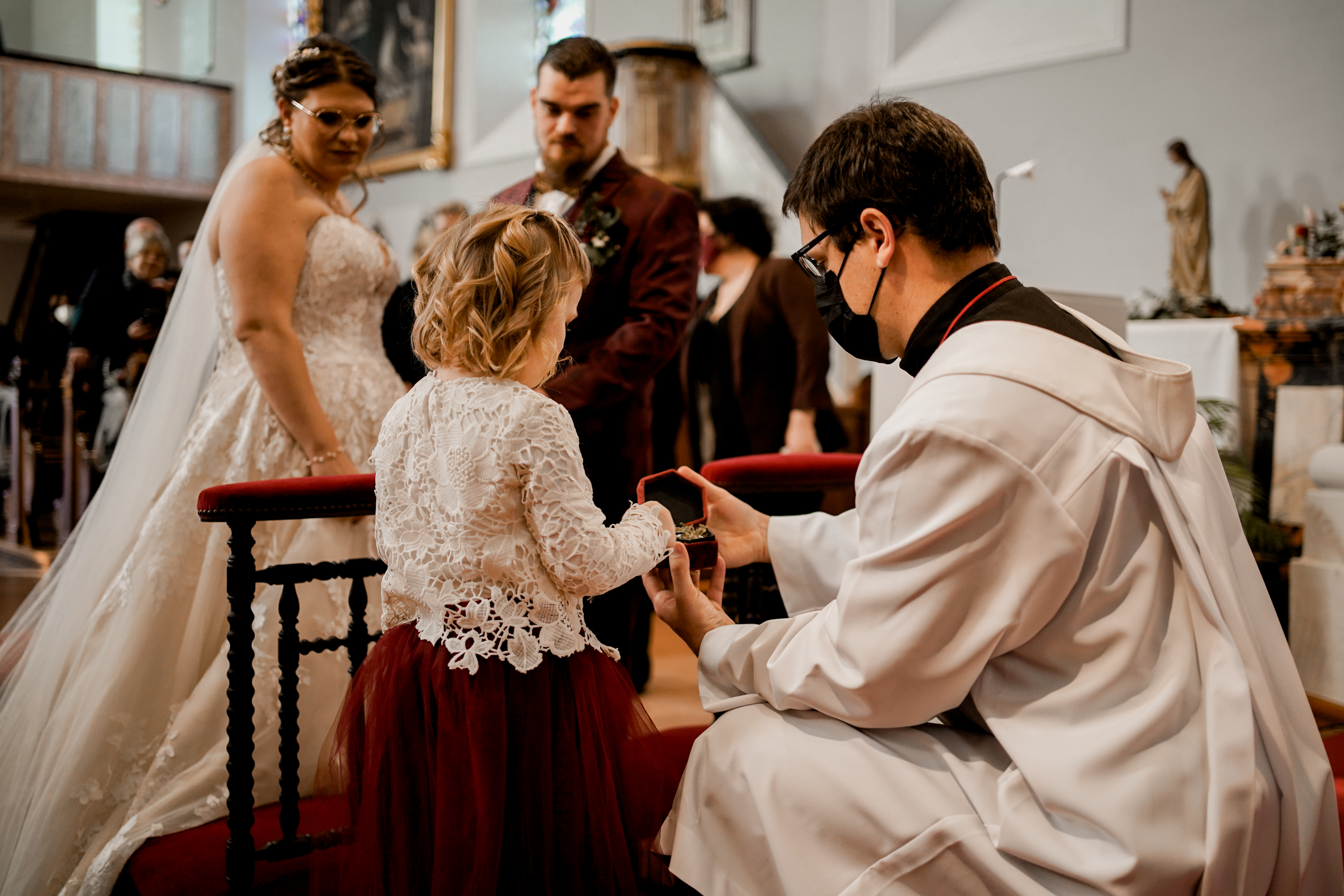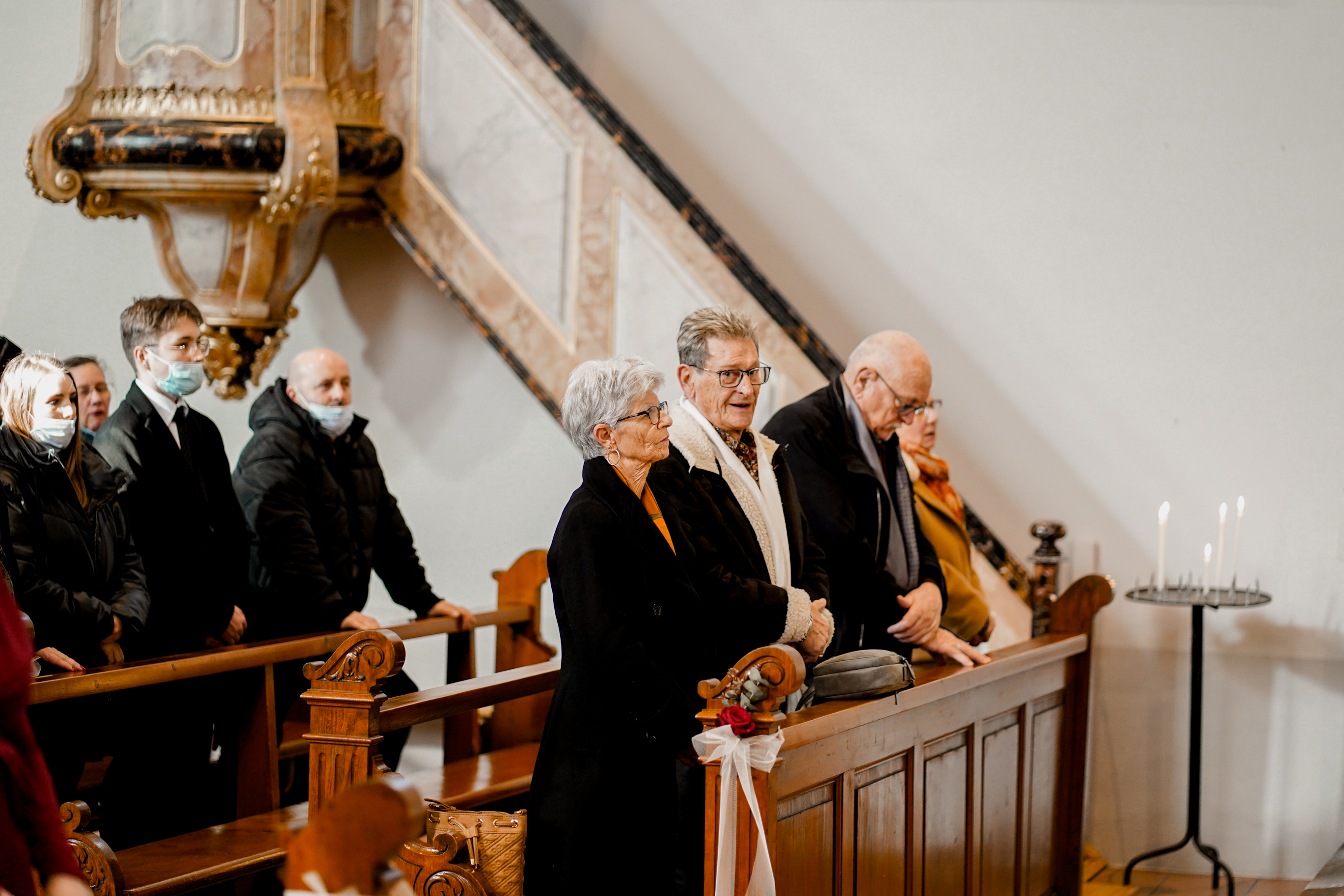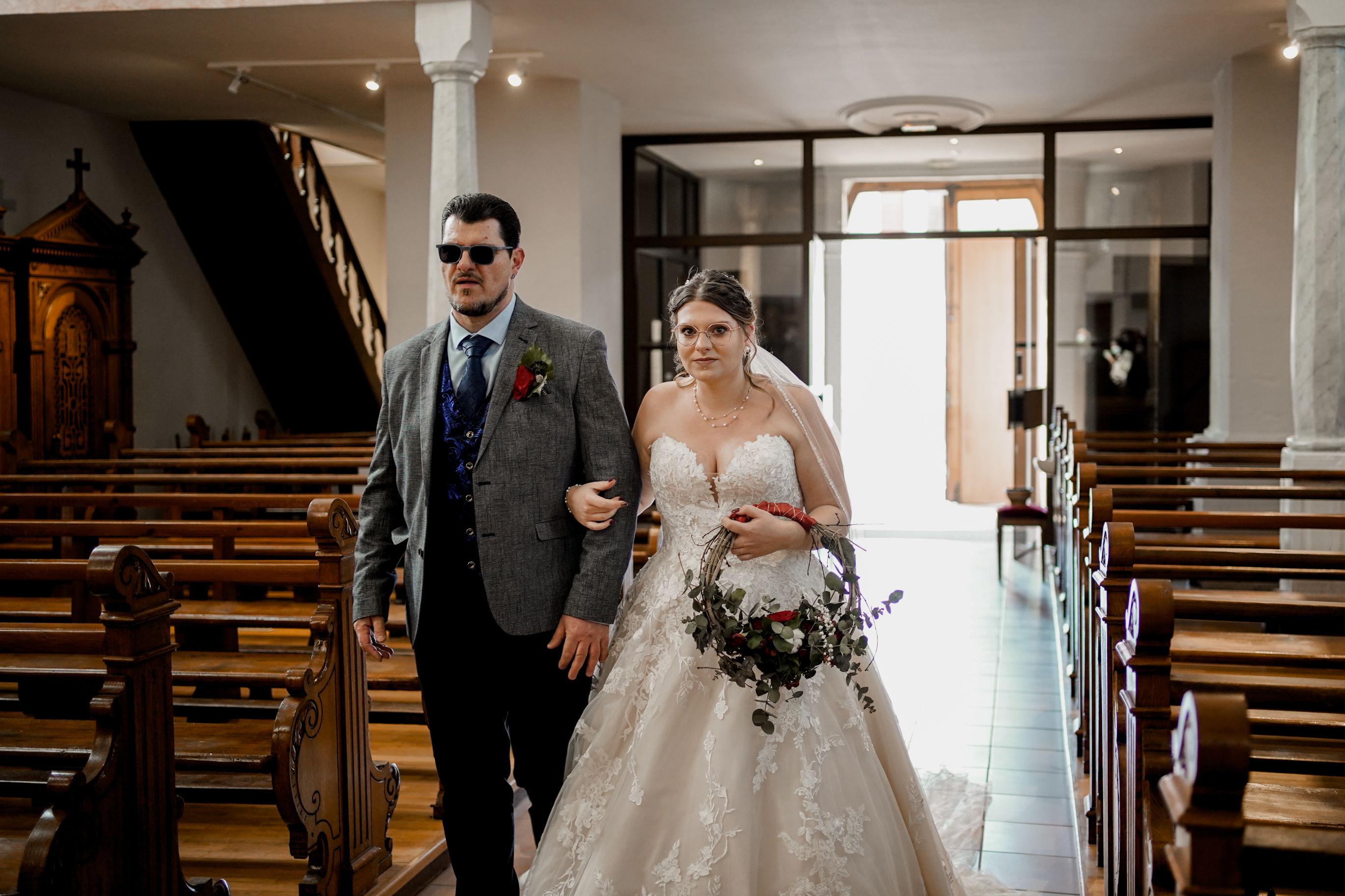 Cet instant « pomponnage » passé, il était temps pour moi de retrouver Joris devant l’église en attendant l’arrivée de la belle mariée. Margaux n’est apparue, aux yeux de tous, qu’à l’intérieur de l’église. Lorsque Joris l’a découverte, l’émotion était au rendez-vous ! J’adore capturer ce genre de moment.